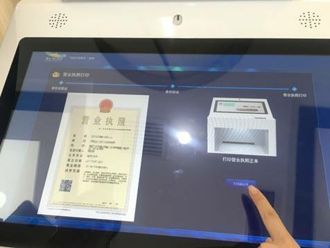 就像大伙兒在火車站取票一樣,點擊營業執照打印后,把身份證放在識別區,系統立刻就能識別出你旗下的企業。