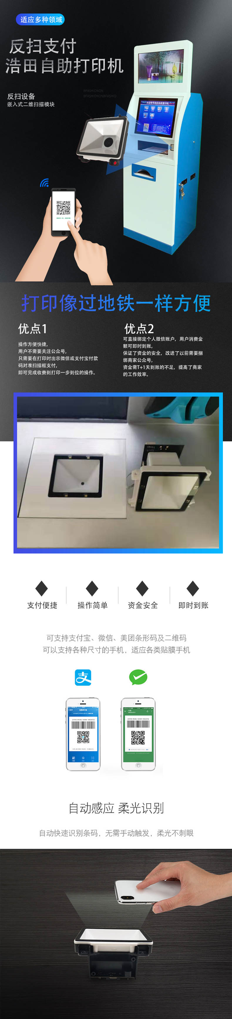 自助打印一體機(jī)的支付方式有:刷卡自助支付/微信支付/支付寶支付/投幣支付