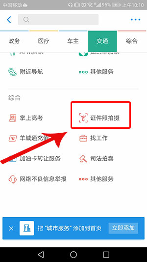 在更更多服務里的“綜合”找到“證件照拍攝”