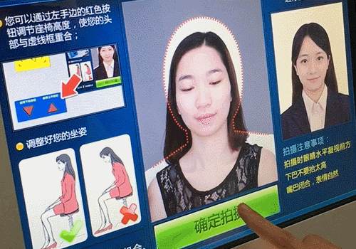 自助照相的操作步驟簡(jiǎn)單明了,申請(qǐng)人只需根據(jù)提示點(diǎn)擊屏幕上的按鈕依次選擇業(yè)務(wù)類(lèi)型、讀取本人身份證、拍攝符合制證標(biāo)準(zhǔn)的照片即可。拍好后,系統(tǒng)自動(dòng)上傳至照片質(zhì)檢平臺(tái),并打印出申請(qǐng)表,整個(gè)流程只需1分鐘左右。